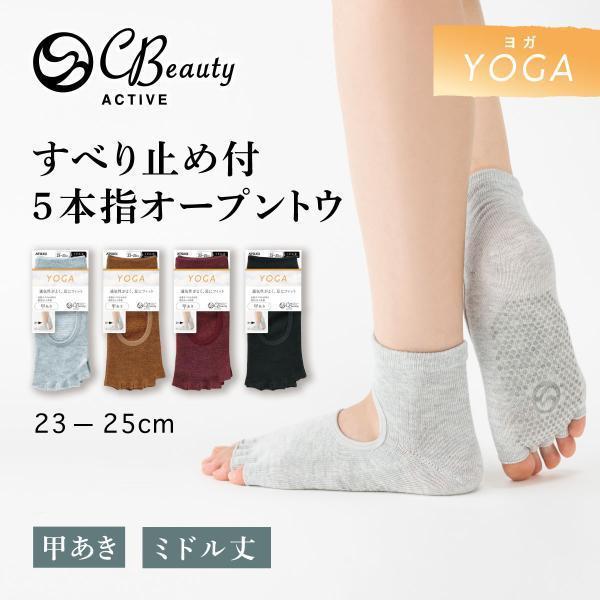 \割引クーポン実施/靴下 ミドル丈 5本指オープントウ 指先なし・甲あき仕様 足底すべり止め付 ヨガソックス スポーツ用 運動 婦人 レディース アツギ JDR8089