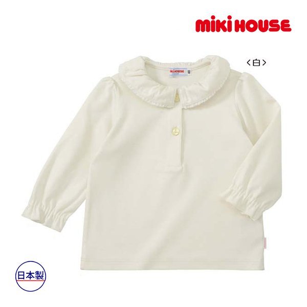 | えりまわりの繊細なレースが清楚なブラウスです☆ ギャザーを入れたえり元のデザインがオシャレですね♪ えりまわりの控えめな刺繍使いもステキですよ☆ 前のふたつボタンで止めてますので、外して着用していただけます。 柔らかなスムース素材で、適度に伸縮性があって着やすくて ジャンパースカートなどのインナーにもピッタリ♪ ちょっとしたお出かけやおよばれにも 着まわせそうなシンプルさも重宝しますよ◎