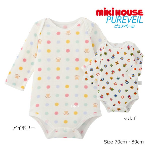 | 衛生用品の為、開封後の返品は承ることが出来ません。あらかじめご了承をお願いいたします。 二枚層でふんわりニットガーゼ素材の長袖ボディシャツです。マルチドットとブロックロゴのプリント柄です。インナーとして使えるボディシャツは、短肌着・コンビ肌着を卒業したら便利な肌着です。 ・かぶり仕様 ・首がすわった後は『かぶり仕様』のものがボタンの数も少なくて着せやすくなります ・股下はホックで開閉 ・股ホックの色を変えて、ホックの付け間違いを防ぎます ・ニットガーゼは、ふわふわとして肌触りのよい、やわらかな素材 ・吸水性・耐久性にすぐれた素材 ・安心の日本製 ・抗菌・抗ウイルス加工『ピュアベール』を施した高機能肌着 ※「抗ウイルス・抗菌加工」 口腔内の洗浄・消毒に使われている成分をベースに開発された固定化抗菌成分「EtakR(イータック)」を使用した抗ウイルス機能繊維加工素材を使用。コットンの心地よい風合いそのままに赤ちゃんをやさしく包みます。クラボウとの共同開発で実現しました。 ※「抗菌・抗ウイルス加工」は、病気の治癒や予防を目的とするものではありません。 ※「抗ウイルス加工」は、繊維上の特定のウイルスの数を減少させます。 ※「抗ウイルス加工」は、ウイルスの働きを抑制するものではありません。 ※ 抗ウイルス性試験はATCC VR-1679(エンベロープ有)を25℃で2時間放置して実施しています。 ベビー ベビー服 赤ちゃん 新生児 男の子 女の子 春 夏 秋 冬 人気 可愛い 出産準備 出産祝い プレゼント ギフト 日本製 綿 綿100% 肌に優しい 抗菌 抗ウイルス | |||||||||||||
