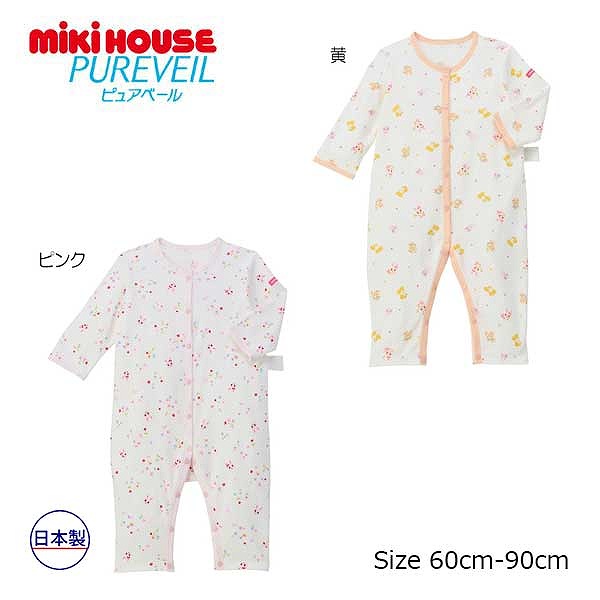 | 衛生用品の為、開封後の返品は承ることが出来ません。あらかじめご了承をお願いいたします。 一年中いつでも快適に着ていただけるフライス素材のカバーオール肌着です。ミキハウスで人気の柄が、ベビー柄のベビーうさこ・ベビーアニマル柄で登場。女の子に人気のお花のプリント柄も登場。大きいサイズにも対応できる90cmサイズまで展開。 ・手首足首までしっかりと包んでくれるカバーオールタイプは肌寒い季節におすすめ ・ホックで股下まで開閉して、お着替えやおむつ替えも便利 ・股ホックの色を変えて、ホックの付け間違いを防ぎます ・フライスは伸縮性や通気性に優れたやわらかな風合いの定番素材 ・吸水性・耐久性にすぐれた素材 ・抗菌・抗ウイルス加工『ピュアベール』を施した高機能肌着 ・安心の日本製 ・抗菌・抗ウイルス加工『ピュアベール』を施した高機能肌着 ※「抗菌・抗ウイルス加工」 口腔内の洗浄・消毒に使われている成分をベースに開発された安全性の高い固定化抗菌成分「Etak®(イータック)」を生地にしっかりと固定させることで、繊維上の特定の細菌の増殖を抑制し、特定のウイルスの数を減少させます。 ※「抗菌・抗ウイルス加工」は、病気の治療や予防を目的とするものではありません。 ※「抗ウイルス加工」は、ウイルスの働きを抑制するものではありません。 ※抗菌性はJIS L 1902、抗ウイルス性はJIS L 1922に準用した試験方法で評価しています。 ベビー 赤ちゃん こども キッズ トドラー 幼児 ギフト プレゼント お誕生日 男の子 女の子 ベビー服 子ども服 インナー 肌着 下着 | ||||||||||||||||||||