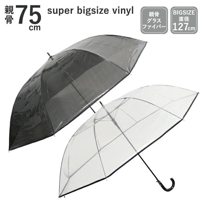 傘 長傘 雨傘 ビニール傘 メンズ 紳士 男性用 75cm ジャンプ 大判サイズ ビッグサイズ グラスファイバー骨 丈夫 パイピング 合皮レザー