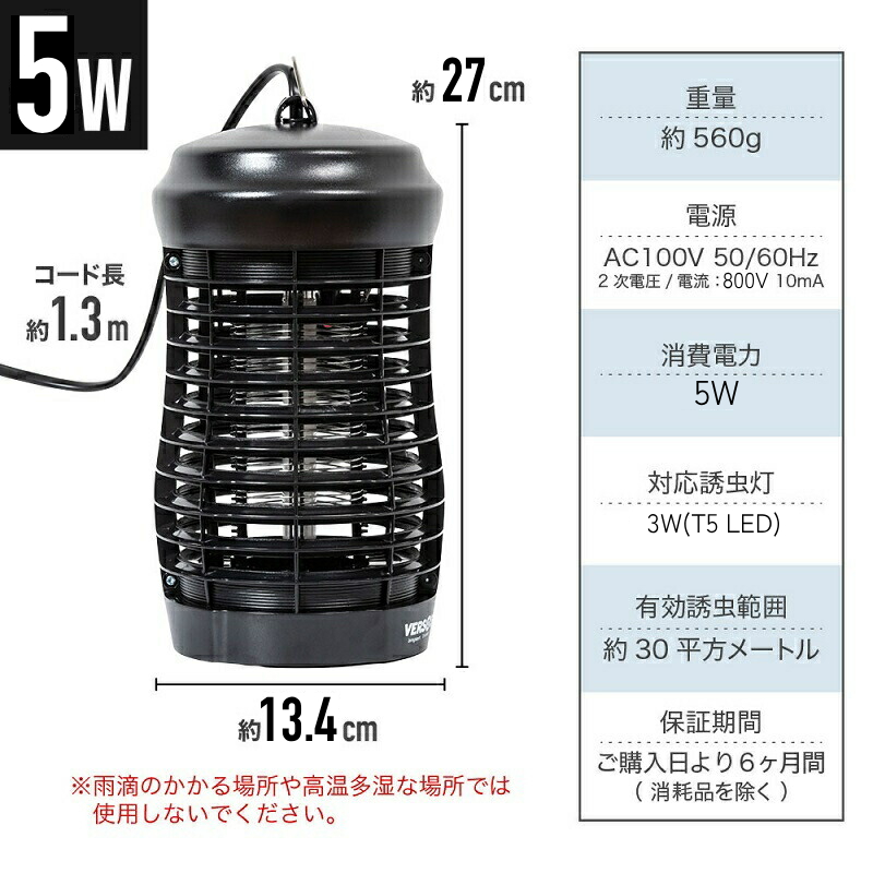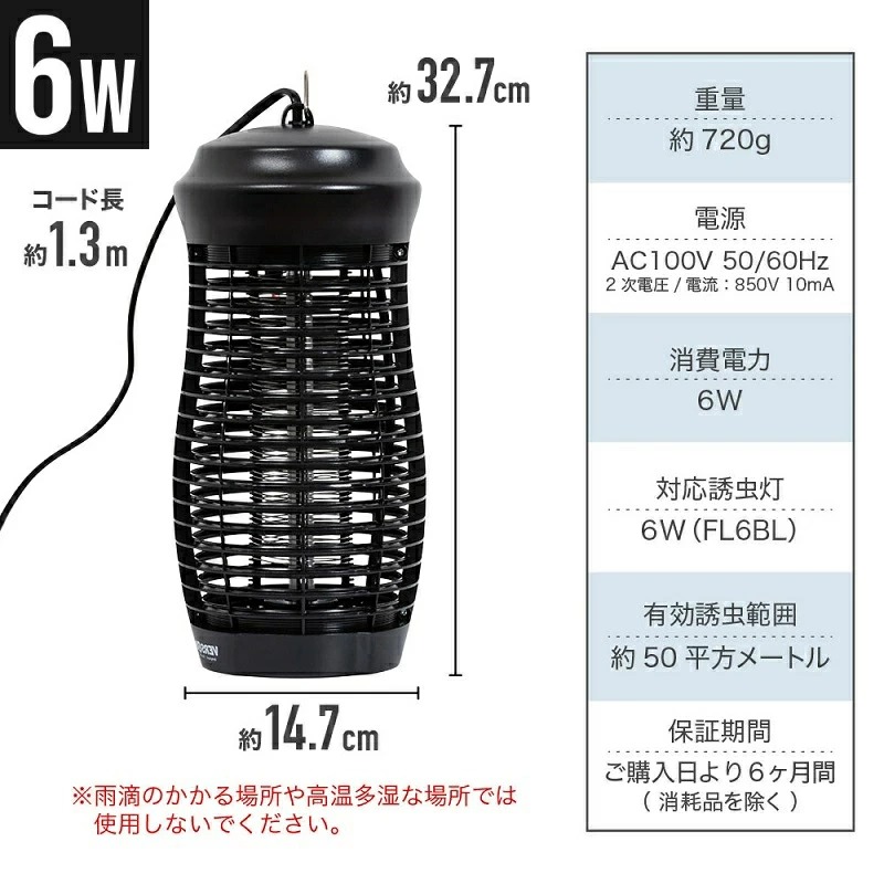 有効捕虫範囲:30m2(4/5W)、50m2(6W)