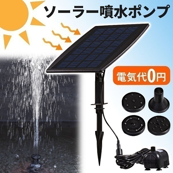 魚のいる池や水槽の酸素供給、庭の噴水、灌漑などにおすすめ! ソーラー噴水ポンプ ソーラーファウンテンは、太陽エネルギーを利用してウォーターポンプを駆動し、 水を汲み上げるランドスケープファウンテンデバイスです。 高効率のソーラーパネルと新しいタイプのブラシレスウォーターポンプを使用しており、 高速起動、高効率、強力な安定性という利点があります。 さらに、この製品は外部電源を必要としないため、設置と操作が便利であるだけでなく、 安全で信頼性が高く、省エネで環境に優しいです。 プールの噴水、岩の噴水、水槽の水循環などの場所で広く使用されています。 【使用方法】 1 )概略図に従って製品を組み立てます。 2 )ソーラーパネルを適切な場所に置き、他の物体によって遮られないようにします。ソーラーパネルが十分な光を受け取ると、ウォーターポンプは正常に動作します。 3 )ポンプを水に浸すと、空気が入り、スプレー効果に影響する場合があります。ノズルを接続する前に、ポンプが正常にスプレーするのを待つことをお勧めします。 【注意事項】 ・本製品はダイレクトドライブウォーターポンプを採用しており、日光が十分な場合にのみ水を噴射し続けることができます。さらに、ソーラーパネルの効率は光の強度によって影響を受けるため、噴水の水噴霧効果は、気象条件、季節の変化、地理的な場所などの要因によっても影響を受けます。 ・ポンプを長時間脱水しないでください。脱水すると、ポンプの寿命が短くなります。 ・ソーラーパネルとコントローラーを水に浸さないでください。 ・水質をきれいに保ち、定期的にポンプを掃除してください。ポンプに破片があると、ポンプの正常な動作に影響します。 ・ソーラーパネルのエッジは鋭利な場合がありますので、ご使用の際は安全にご注意ください。子供にこの製品を使用させないでください。 〔商品詳細〕 ソーラーパネル:9V / 2.5W ポンプ出力:DC 4.5-10V 最大流量:150L / h 最大頭:70cm 最大スプレー高さ:50-120cm ソーラーパネルに十分な日光が当たると、ポンプは3 秒以内に起動します。 |