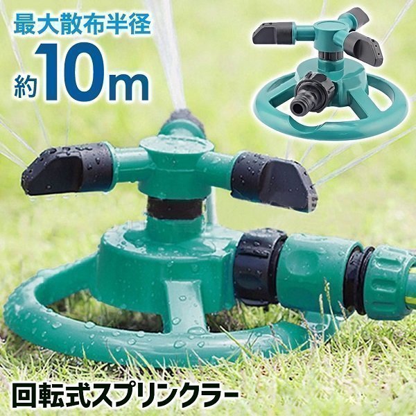 | 回転式スプリンクラー 取り付けが簡単で、芝生やお庭での家庭菜園・花壇の水やり・畑での農作業 夏場の水まきなど様々な散水シーンに最適なスプリンクラーです。 3つのアームが360度回転し、それぞれのアームの角度を 15度と45度の2段階に角度調節可能でまんべんなく散水します。 〔商品詳細〕 サイズ:約15×15×8.5cm 素材:ABS 散水範囲:約半径8〜10m |