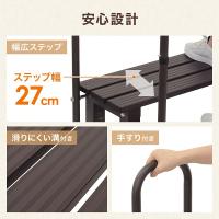 ・軽量なアルミ製 アルミ製なため、軽量なのに丈夫で長くお使い頂けます。 玄関にもマッチしやすいブラウンカラーは置き場所にも困りません。 | | 商品詳細 | サイズ:幅108×奥行53×高さ118cm 素材:天板・脚部/アルミニウム、手すり/スチール 耐荷重:150kg JANコード:4582228238558 | |