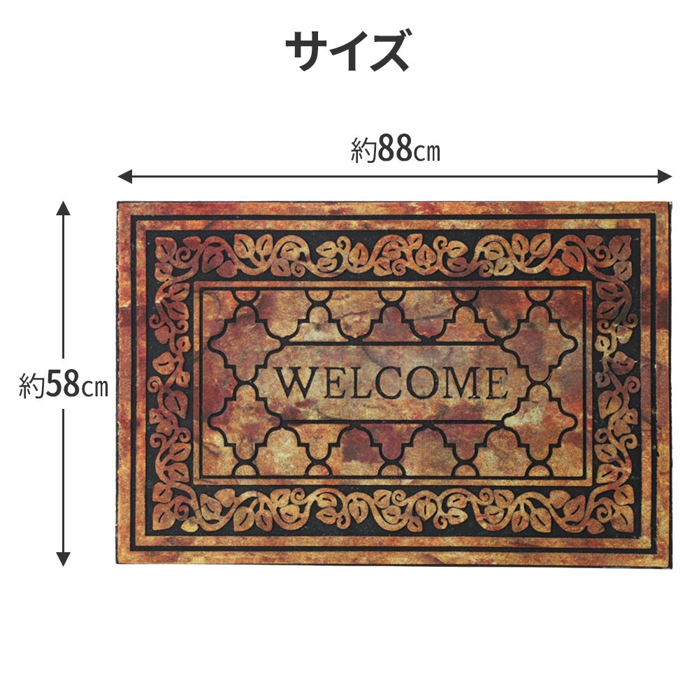 ストーンにリーフ柄を彫刻したようなエレガントなゴム製玄関マット。