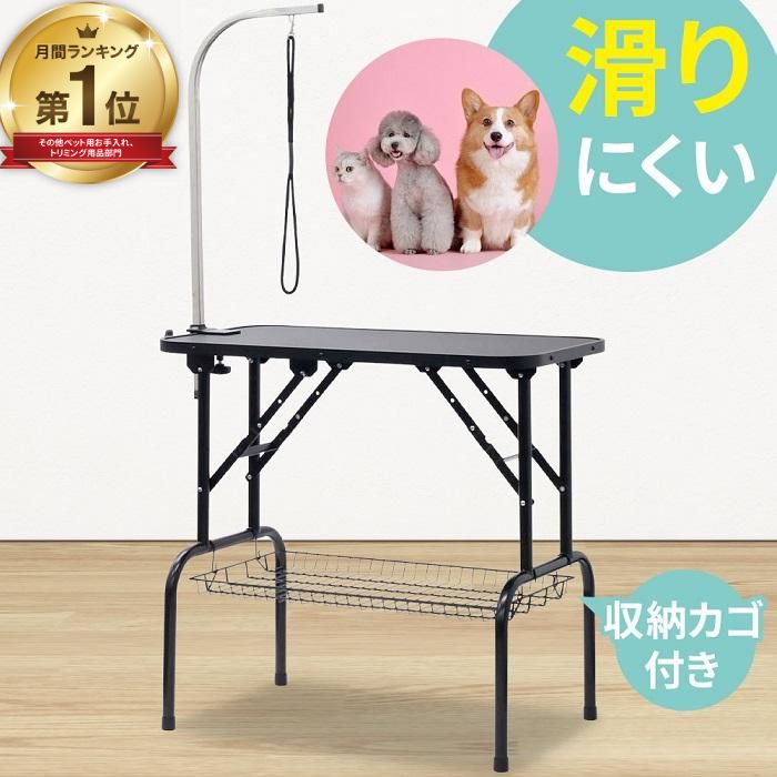 テーブル下にはトリミング用品を置いておける便利なカゴ付き。トリミング用品を置いておけるので便利です。