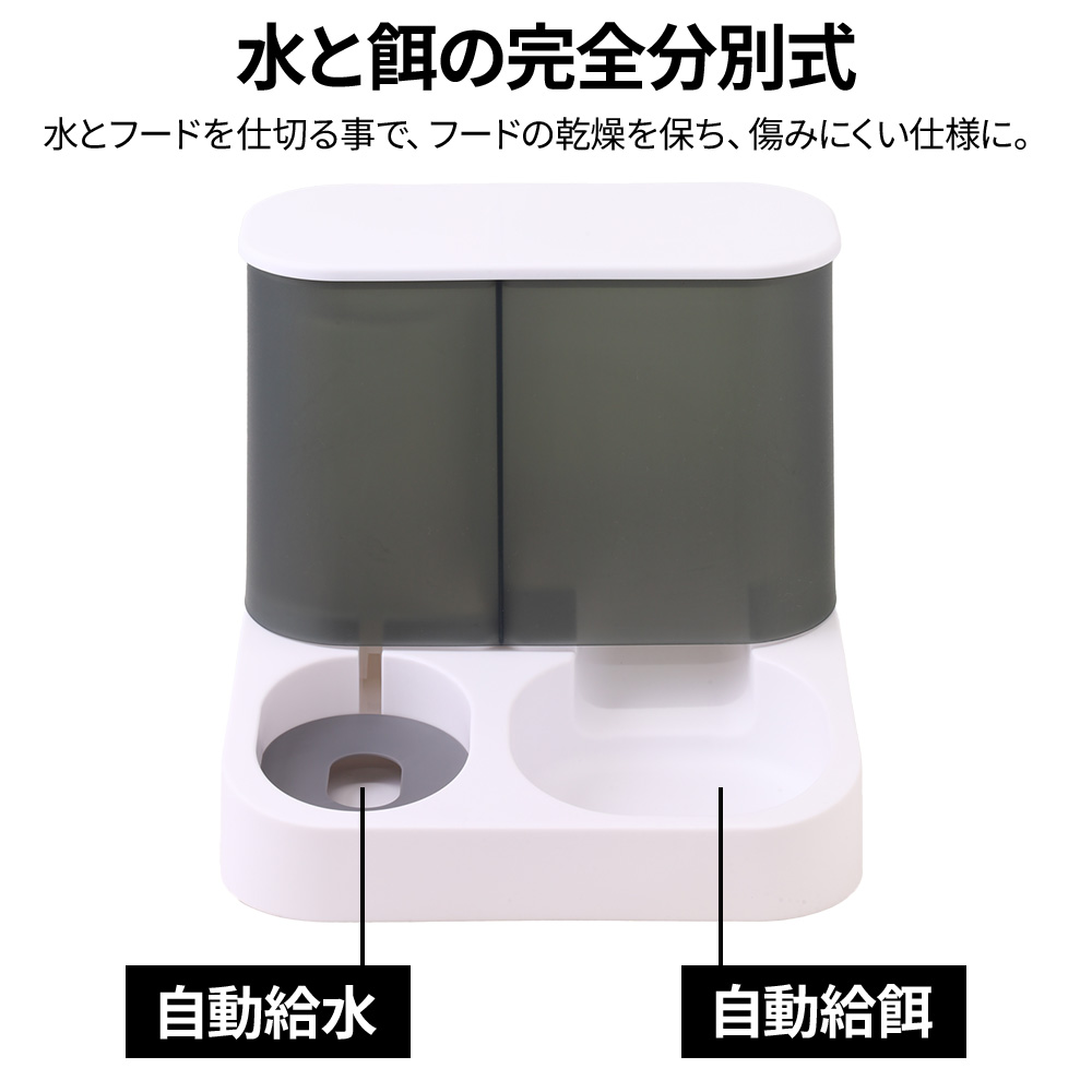 水とフードを仕切る事で、フードの乾燥を保ち、傷みにくい仕様に。