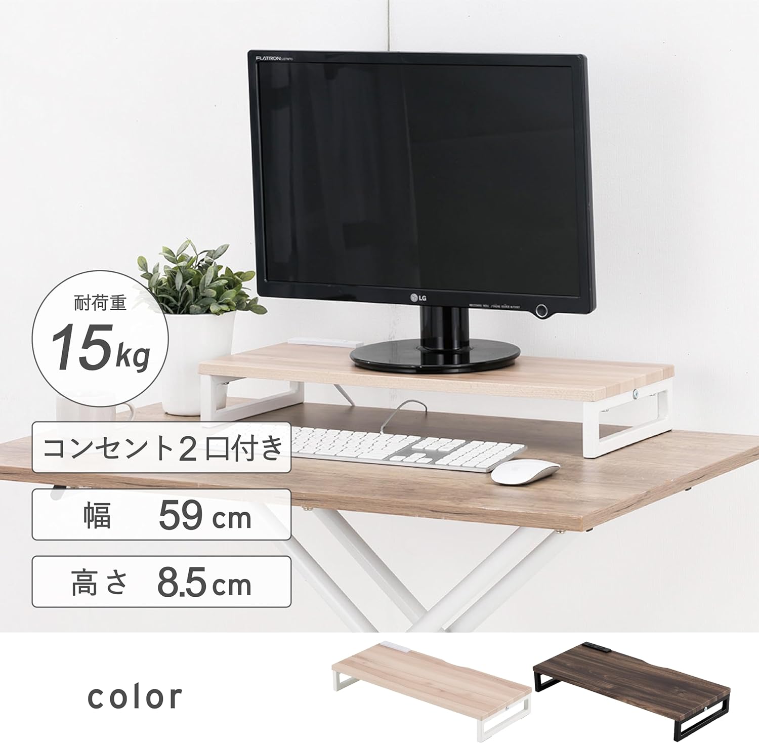 モニター台 卓上 コンセント付き おしゃれ モニタースタンド パソコン台 机上 卓上 ロータイプ デスク上 棚 ラック デスクトップ