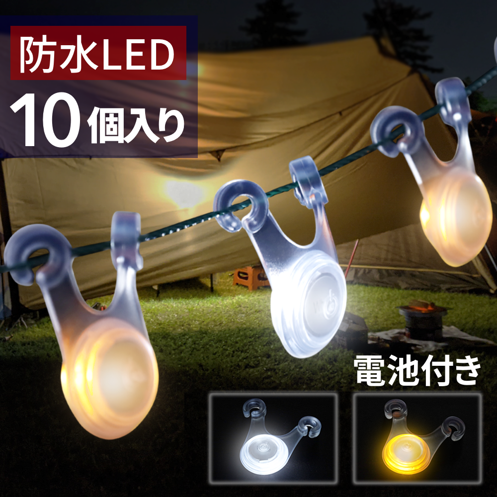 ロープライト LED 10個セット テント タープ ペグ キャンプ アウトドア ガイロープ ライト LEDライト 夜 10個 電池付き 夜 安全 転倒防止 防水 イルミ