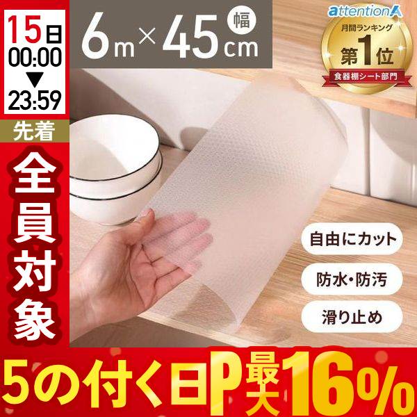 ( 食器棚シート キッチンシート 滑り止め ずれない 45cm 6m 便利グッズ 透明 食器棚 シート 地震対策 災害対策 北欧 おしゃれ 6m巻き 地震 防災 食器棚用シート )