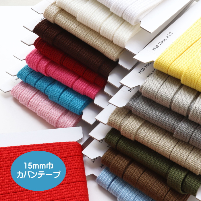15ミリ巾カバンテープ/15ミリ巾のアクリルカバンテープ/バッグ用テープ/持ち手用テープ/ショルダー用テープ/平織テープ/入園入学/N24