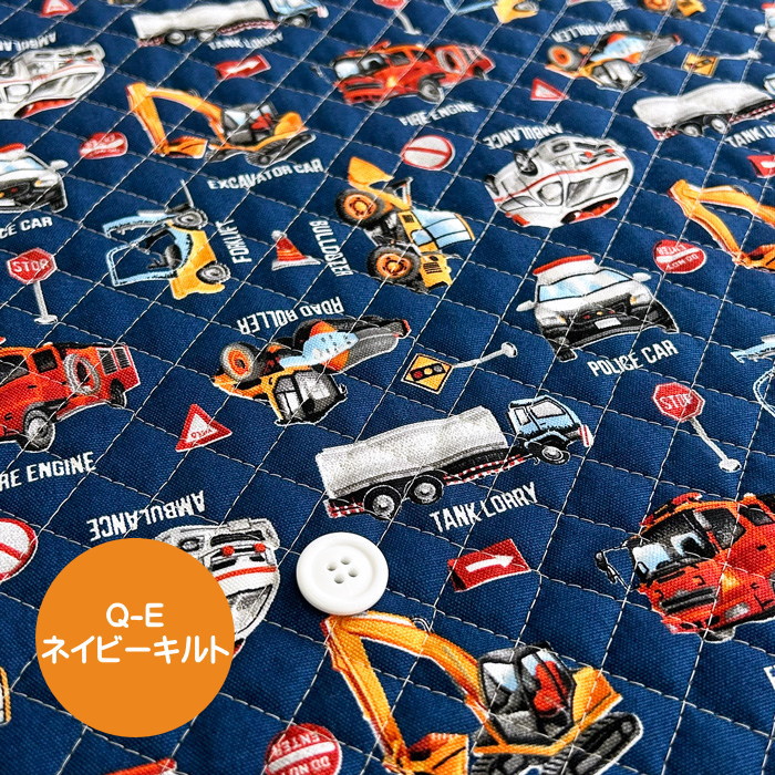 はたらくくるまとその名前が英語でプリントされた柄のキルト生地です。