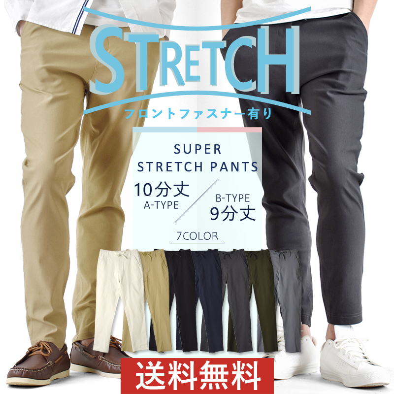 チノパン ストレッチ メンズ パンツ イージーパンツ ロング アンクル ビジネス 10分丈 9分丈 スキニー 前開き 伸縮 ゴルフ S M L LL 3L 送料無料 通販Y