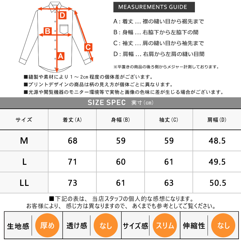 写真モデルは身長174cm体重60kgで、Mサイズを着用しています。