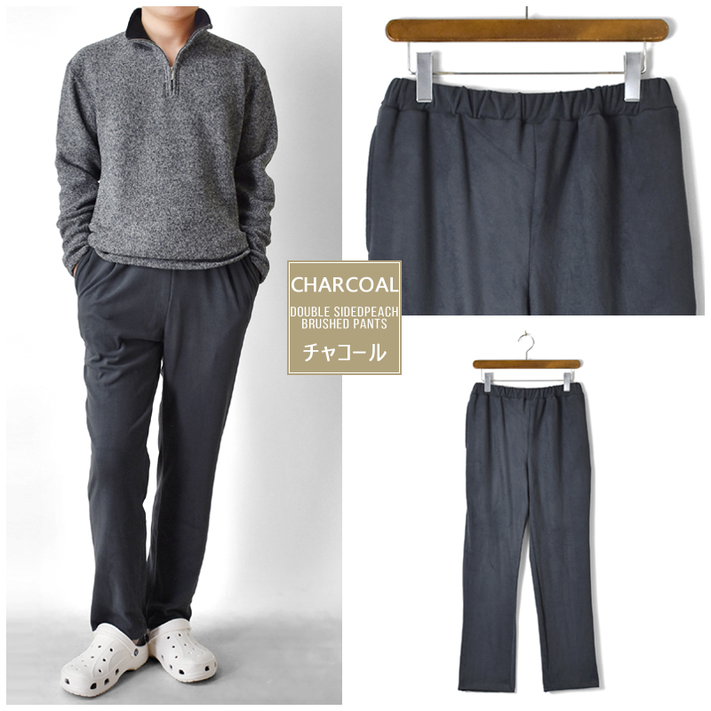 快適な着心地にとことんこだわり、今まで体験したことのない肌触りを実現した、finest(最高級)の両面ピーチ起毛パンツ。ウエストはゴムシャーリングとスピンドル付きのサイズ調節が可能なつくりで、ルームウエアはもちろんワンマイルウエアとしても着用していただける一枚。シンプルな無地の4色展開でこの秋冬一枚は持っておきたいマストアイテム。