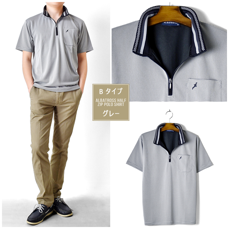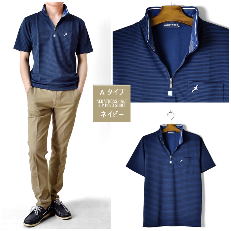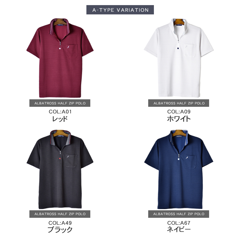 アルバトロス ハーフジップ ポロシャツ カットソー ゴルフ ゴルフシャツ ゴルフウェア DRY 吸汗速乾 涼しい クール メンズ 送料無料 通販MC《M1.5》