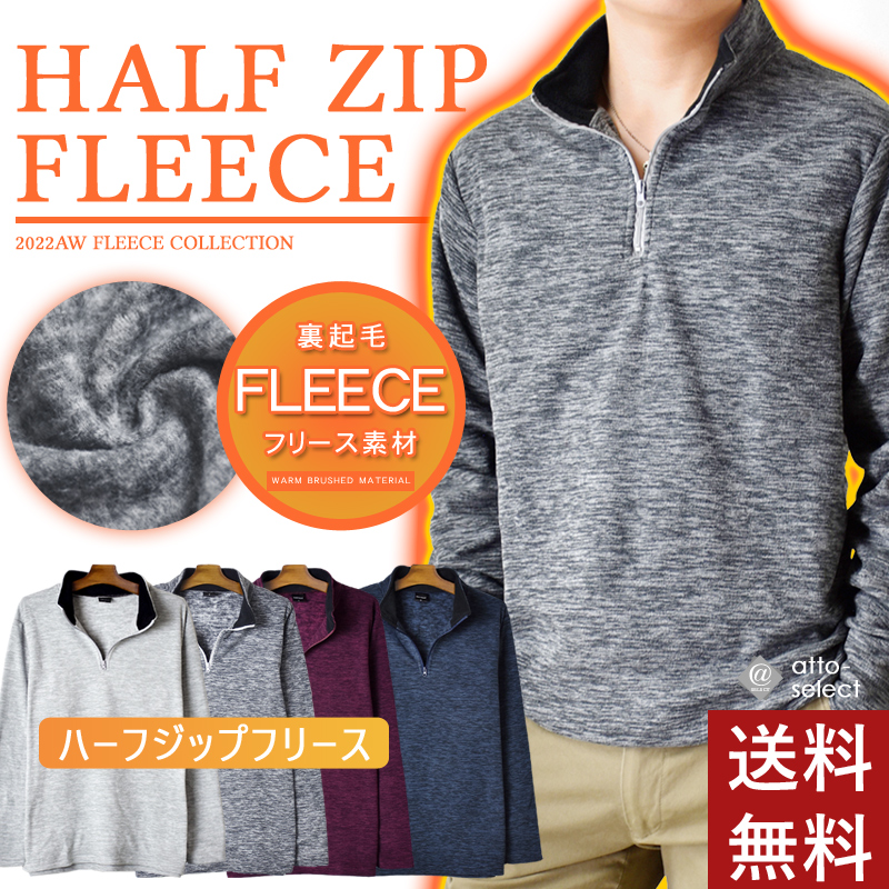 ニット フリース ハーフジップ メランジ調 カチオン スウェット セーター メンズ 送料無料 通販YC