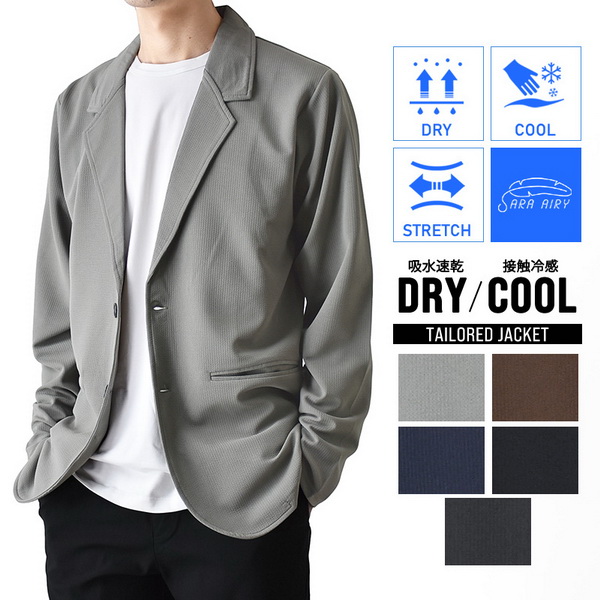 さらりとした肌触りのメンズテーラードジャケット。接触冷感素材を採用し、暑い季節でも快適に着用できます。ストレッチ素材を使用し、窮屈感もありません。また速乾性も優れているので、汗をかいてもすぐに乾きます。シンプルなデザインなので、様々なコーディネートに合わせやすく、着回しもしやすいです。