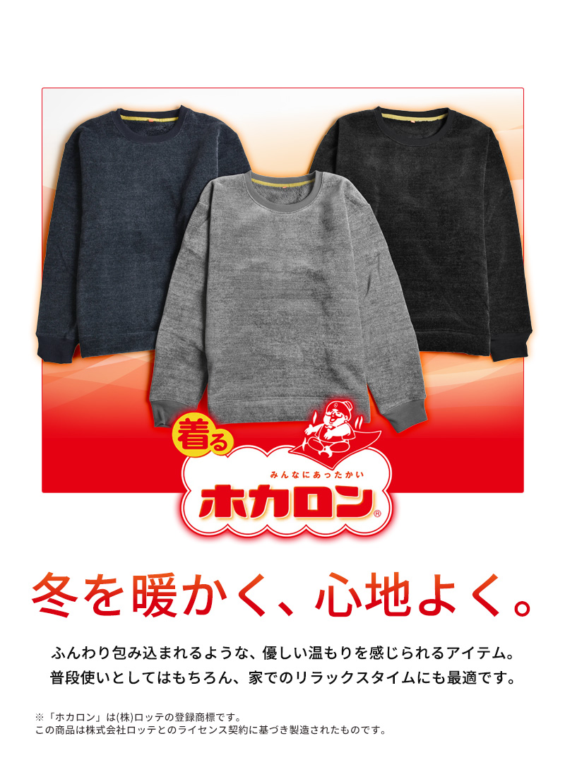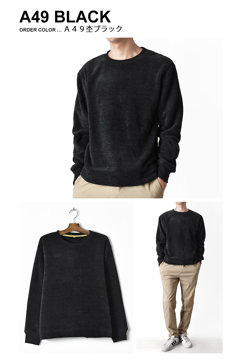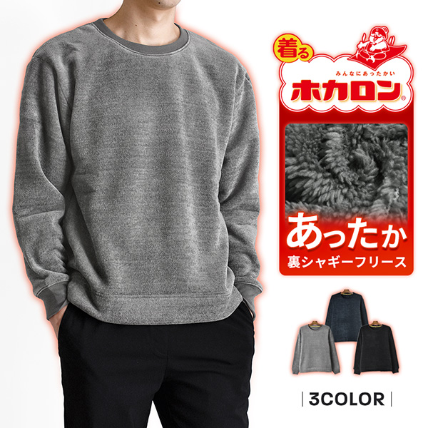 暖か裏起毛 ボアフリース メンズ トレーナー 厚手 ストレッチ 防寒 秋冬 着るホカロン 送料無料 通販YC