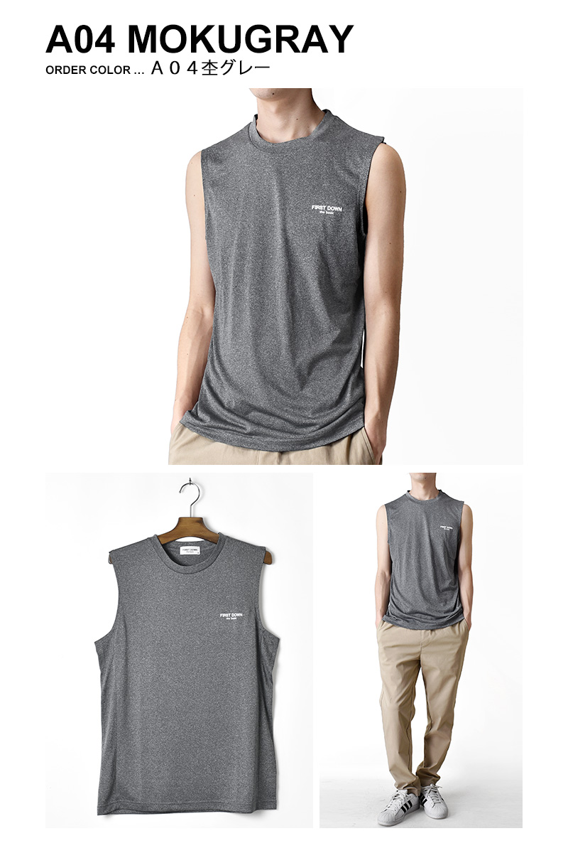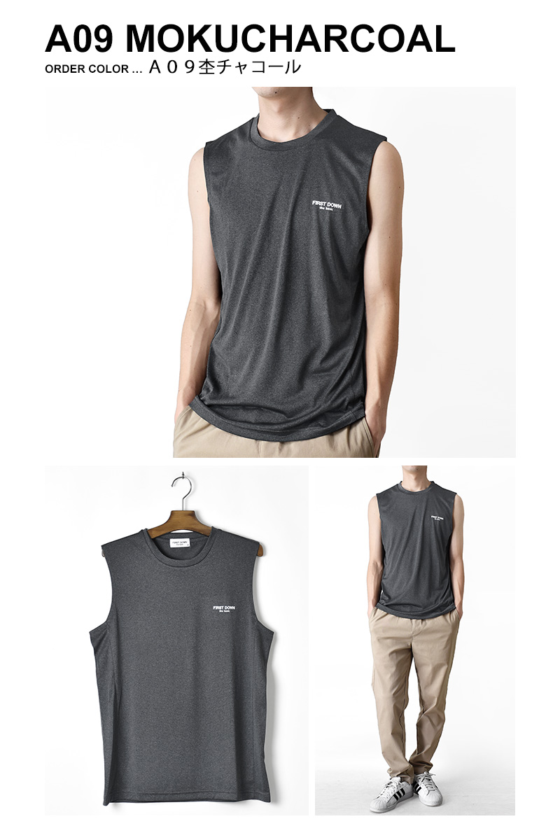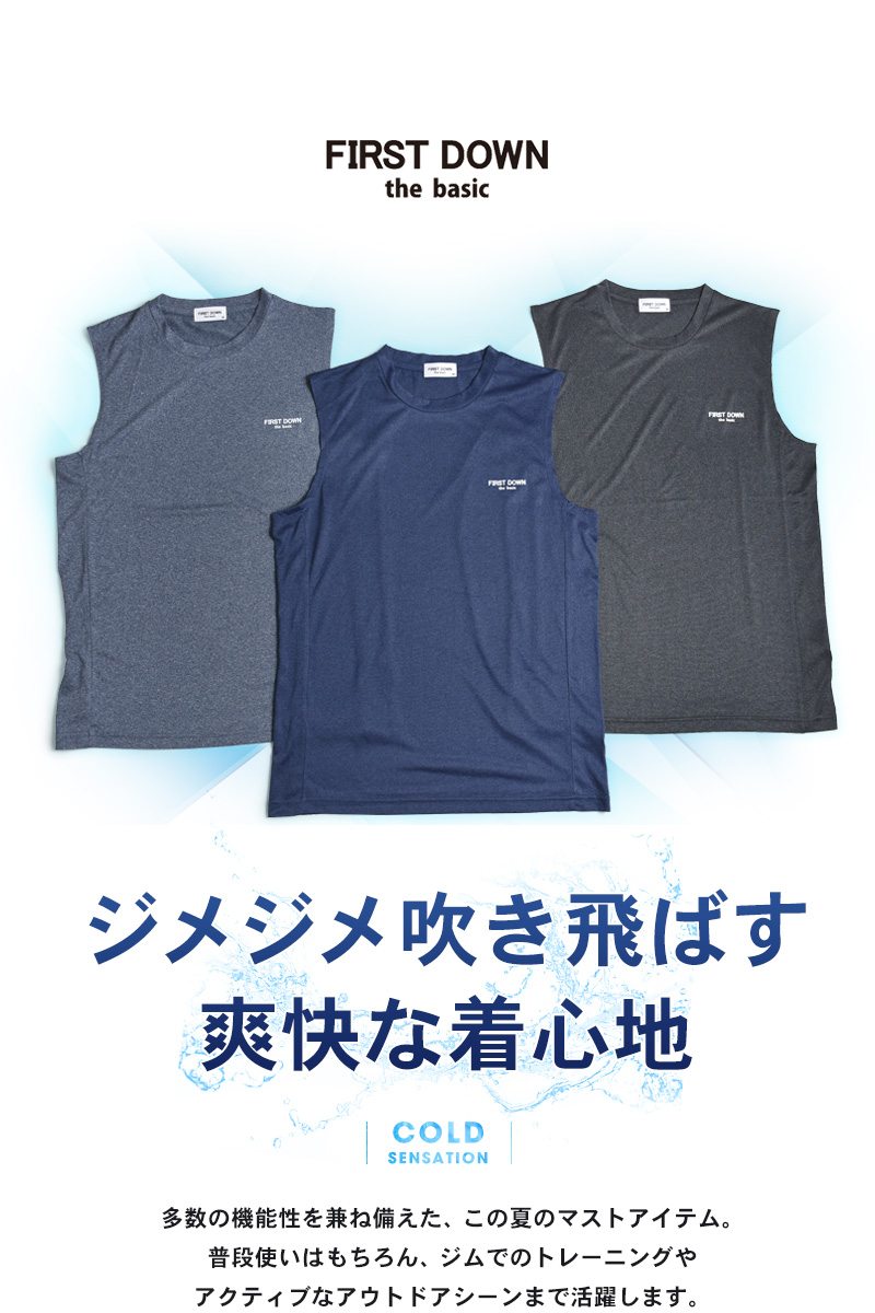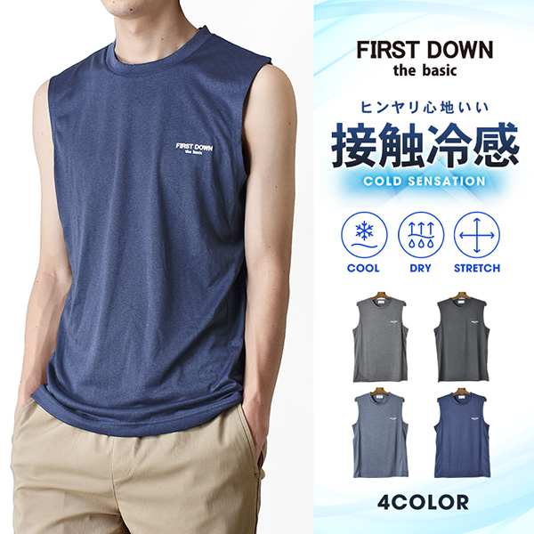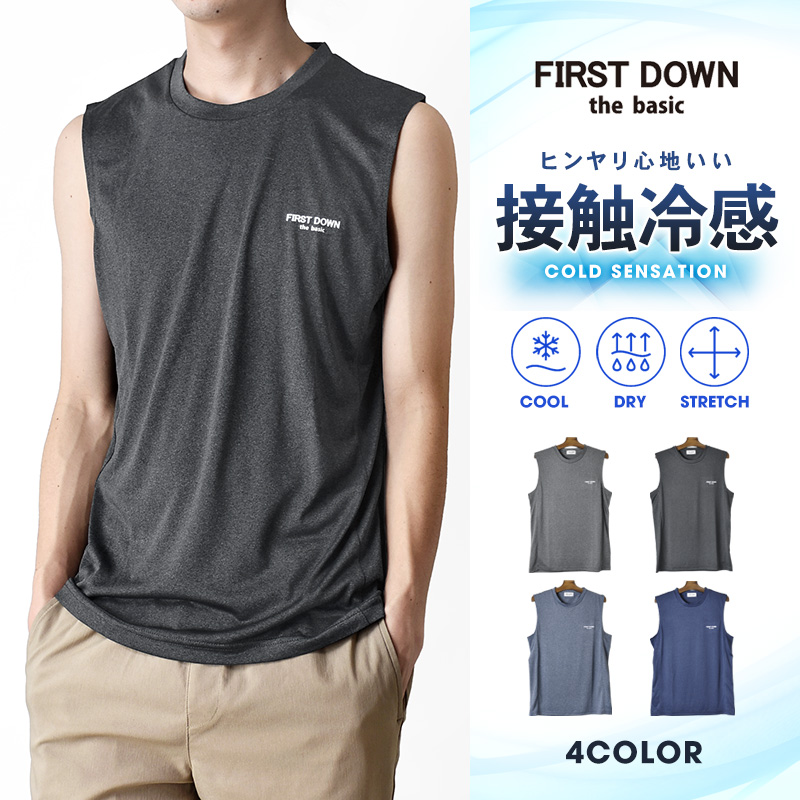 Tシャツ メンズ ノースリーブ 速乾 DRYストレッチ 接触冷感 タンクトップ FIRSTDOWN thebasic 送料無料 通販Y
