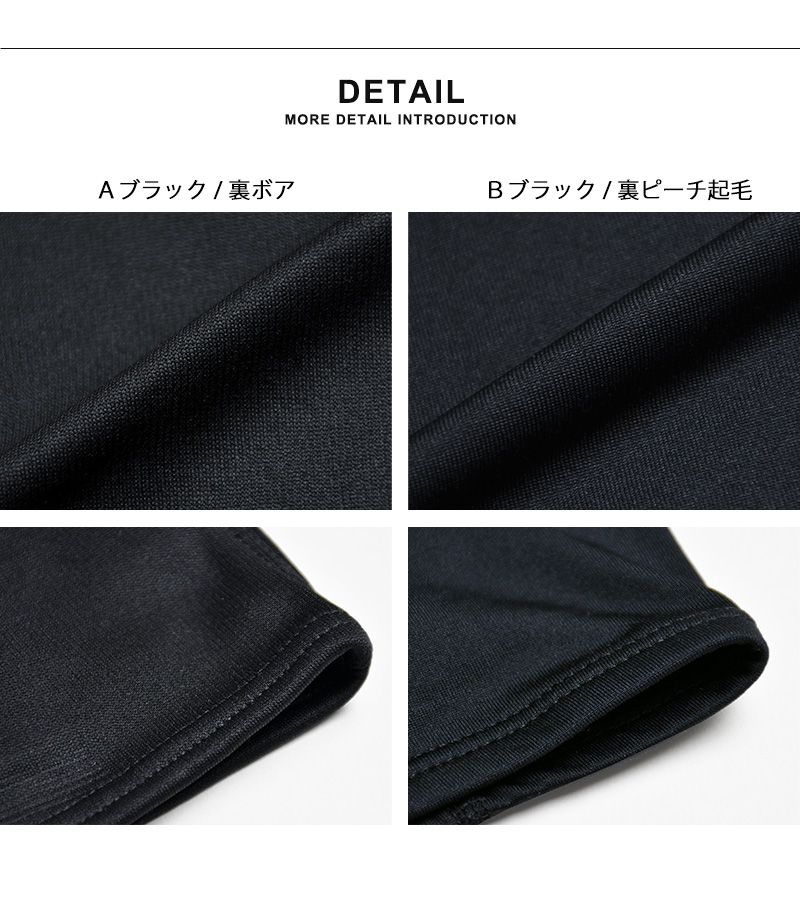 【裏ボア】ポリエステル95%ポリウレタン5% 【裏ピーチ起毛】ポリエステル90%ポリウレタン10%