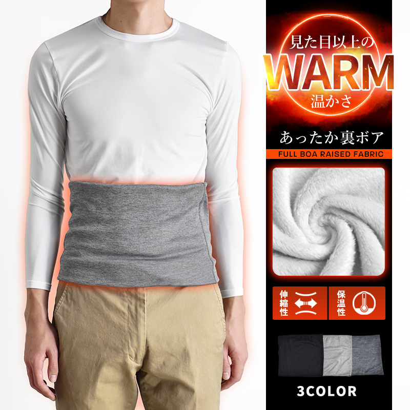 抜群に暖かいメンズ腹巻。身体の芯から暖まる裏ボア仕様。ストレッチ素材で伸縮性があるので、リラックスして着用可能。普段使いはもちろん就寝時にも活躍する便利アイテム。