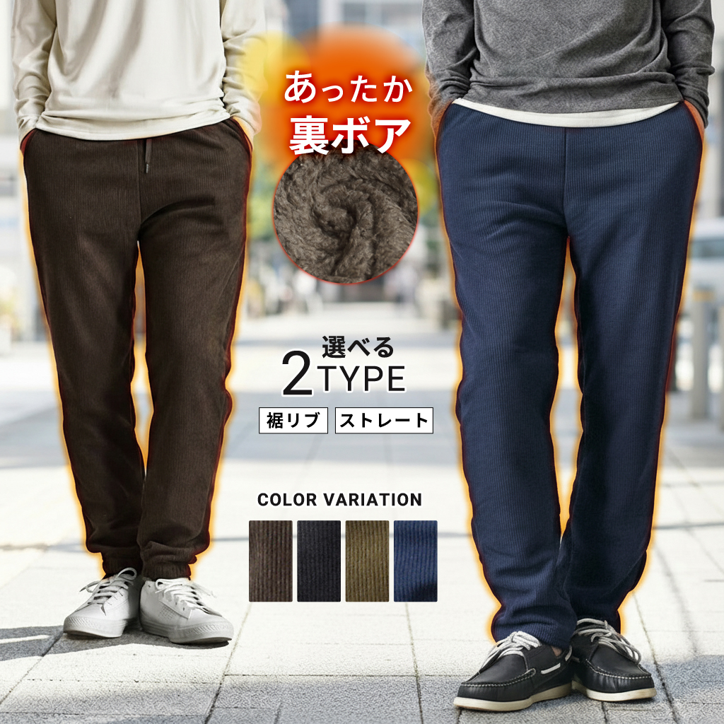 あったか裏起毛 コーデュロイパンツ メンズ ストレッチ 裏ボア テーパード 秋冬 防寒 厚手 送料無料 通販YC