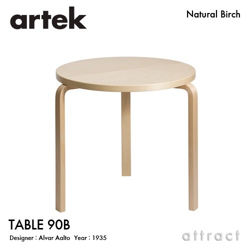 Artek アルテック TABLE 90B テーブル Φ75cm (厚み 4cm) 3本脚 バーチ材 天板 (バーチ) 脚部 (クリアラッカー) デザイン:アルヴァ・アアルト
