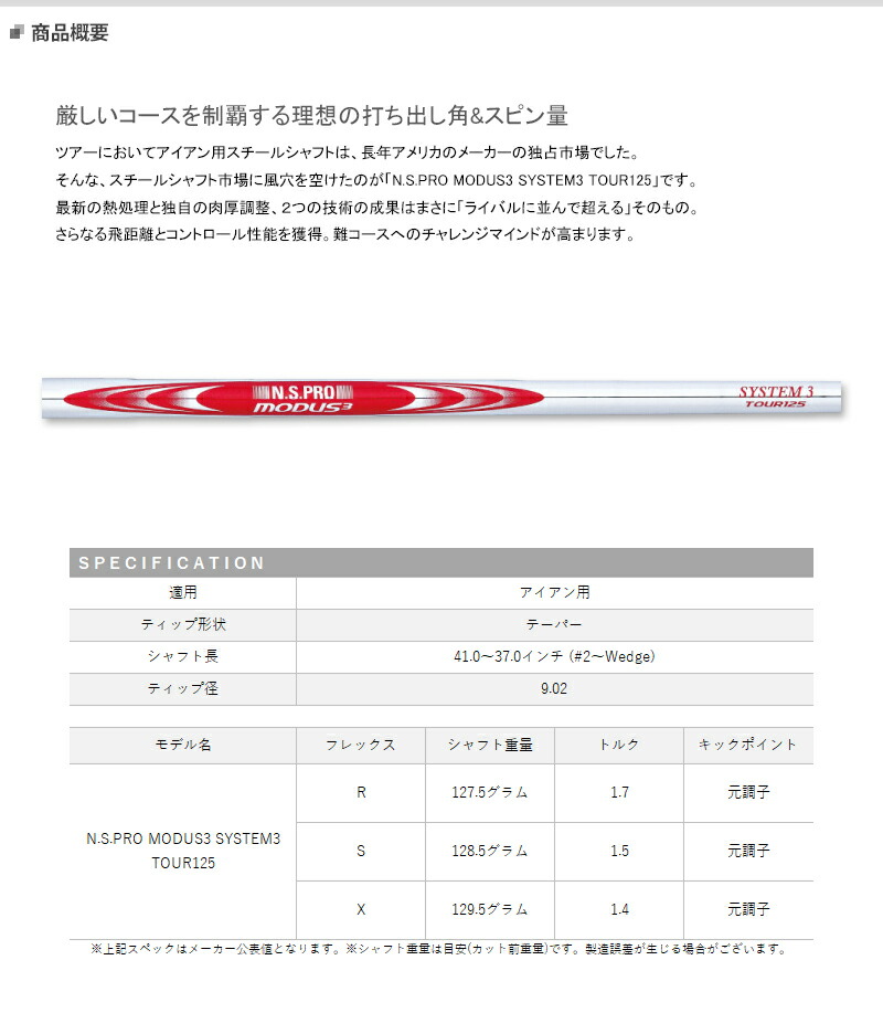 【取寄】日本シャフト NSプロ モーダス3 システム3 ツアー125 アイアン用スチールシャフト単体販売