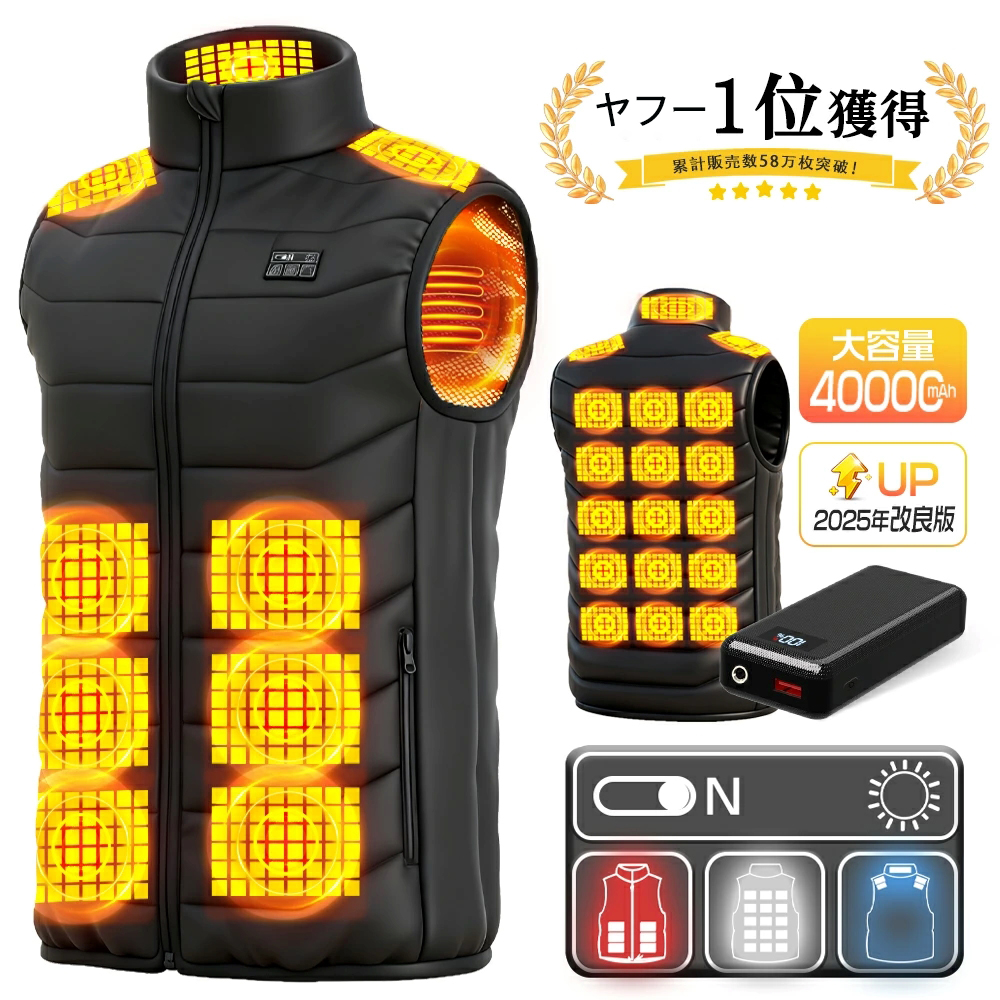 【26エリア発熱・今期最新モデル】 電熱ベスト 日本製 プレミアム版 電熱 ベスト モバイルバッテリー USB給電 メンズ レディース 3段階 アウトドア 水洗い可能