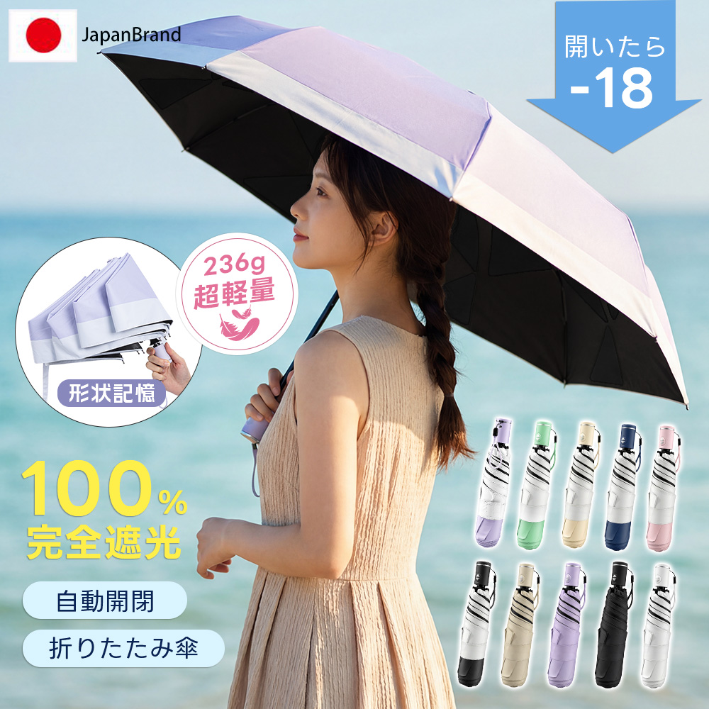 \皮膚科医師監修/ 日傘 折りたたみ 完全遮光 3秒たためる傘《永遠形状記憶》軽量 236g 新生活 自動開閉 折り畳み傘 6本骨 uvカット 紫外線対策 日焼け対策