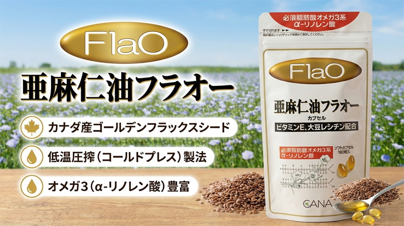 FlaO 亜麻仁油 フラオー カプセル 180粒 オメガ3 アルファリノレン酸 低温圧搾 カナダ産 アマニ油 サプリ キャナ 健康維持 メール便対応可能 5サイズ