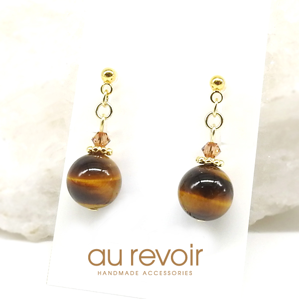 金運upの天然石タイガーアイのシンプルなイヤリング