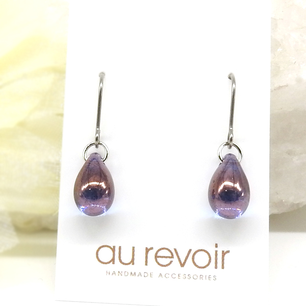 パープルの色合いと、ぷっくりとした雫が可愛らしいピアスです。
