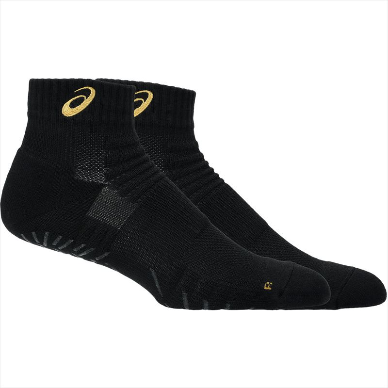 【1点までメール便可】 [asics]アシックス グリップショートソックス12 (3053A162)(003) パフォーマンスブラックxゴールド[取寄商品]