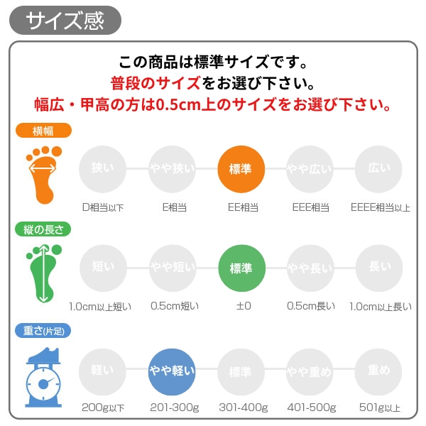 甲高、幅広の方→「0.5cm大きめ」