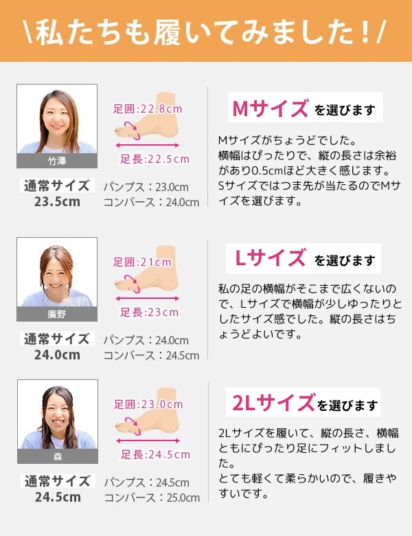 取り扱いサイズ:S[22.5-23cm] M[23-23.5cm] L[23.5-24cm] LL[24-24.5cm]
