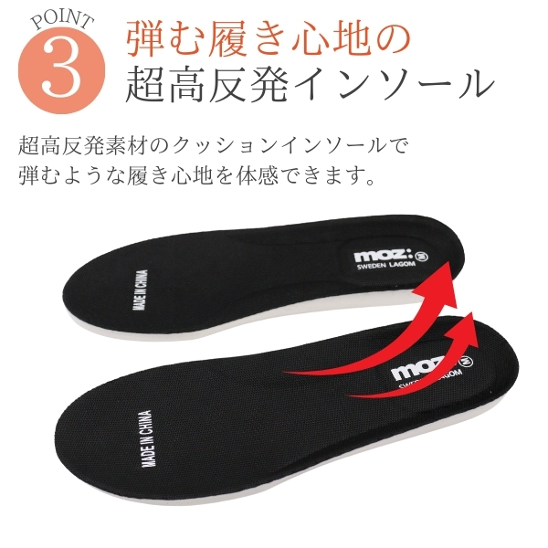 超高反発素材のクッションインソールで、弾むような履き心地を体感できます。