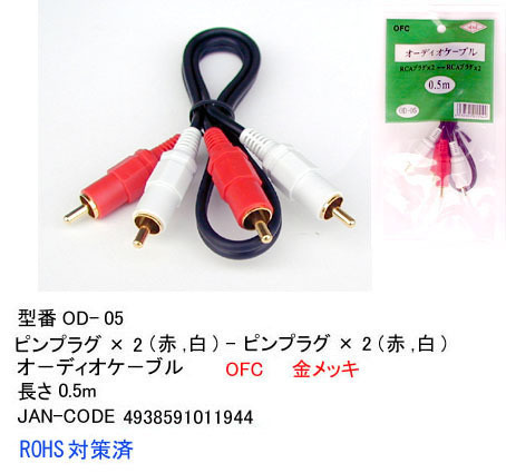 【OD-05】RCAオーディオケーブル ピンプラグx2(赤・白) 0.5m