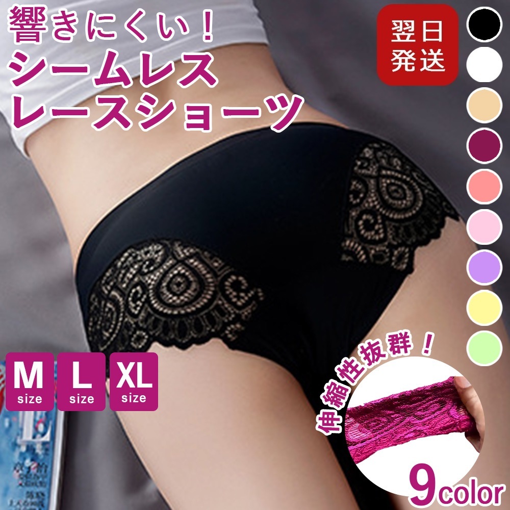 レディース ショーツ レース パンツ 下着 シームレス 薄い 伸縮性 無地 バックレース ノーマル サニタリー 生理用 無地 レースパンツ スタンダード
