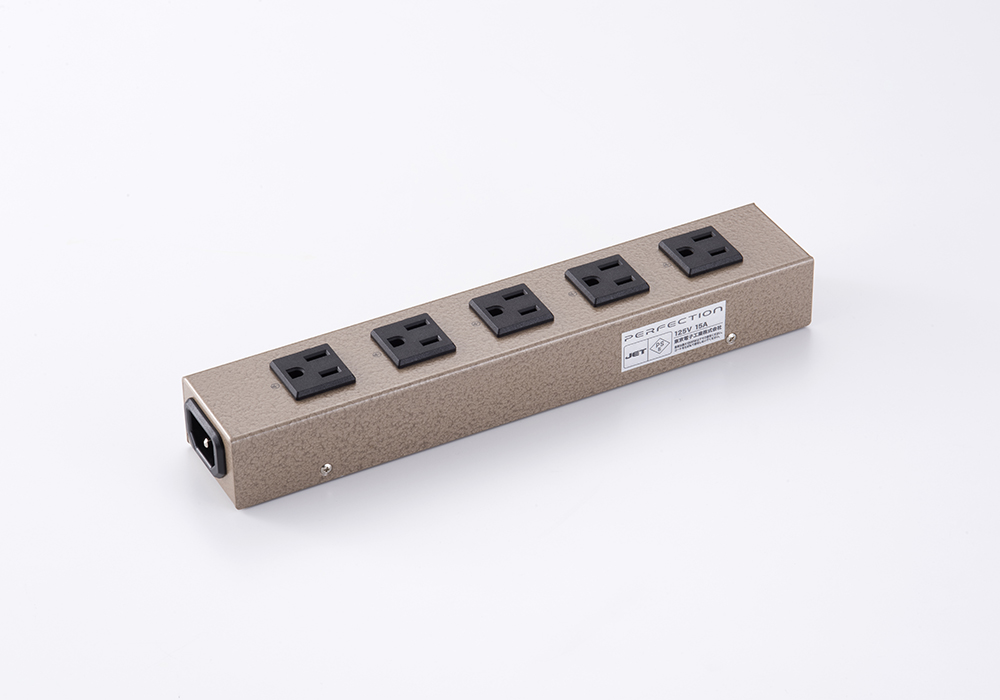 PERFECTION「PFT-T850」は、エントリークラスの電源タップ です。電子部品から発生するノイズは、年々高周波数化しており、1GHzを超える周波数帯のノイズが発生しています。このノイズは、音質の劣化の原因となります。そのため、主に1GHz以上の電磁波を広帯域に吸収する効果のあるEMIサプレッサーシートを筐体内部に搭載することで、飛び交う電磁波を吸収し、音質への悪影響を防ぐ設計になっています。振動対策は、1.2mm厚の鋼板製フレームを採用し、底面には衝撃吸収スポンジを採用しています。フレームは高剛性により振動を抑制し、スポンジは振動が発生した場合にそれを吸収することで、トータルに振動を抑制します。カラーは落ち着いたゴールド色を採用し、傷の目立ちにくいハンマートーンで仕上げました。