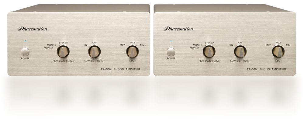 オールディスクリート部品による新規設計V-I/I-V 変換型全段対称無帰還増幅回路現代のアンプの主流を占めている負帰還アンプは半導体/真空管共に入力信号と出力信号を常に比較し、この差(補正信号)を入力信号として増幅する為ローコストで高精度の増幅が可能です。 しかし入力信号と出力信号の間には原理的に解消できない時間遅れがあり、これがTIM 歪等を発生し負帰還アンプが音質的に満足できない大きな原因の一つになってます。 フェーズメーションでは半導体/真空管共にすべてのアンプを無帰還アンプで構成しております。無帰還アンプでは負帰還アンプのような補正動作は有りませんので、構成する部品、回路に高い精度/技術を要求されます。 その結果、音源(レコード)の情報を余すことなく100%再生する事が出来、音質面では音楽の躍動感、ダイナミクス、陰影等の表現に優れ音楽性のある再生が可能になりました。本機では厳選されたディスクリート素子を新規設計のV-I/I-V 変換型全段対称無帰還アンプで一度入力された信号を電流に変換しイコライザー処理をして電圧に戻し、たすき掛けのBuffer で出力しております。