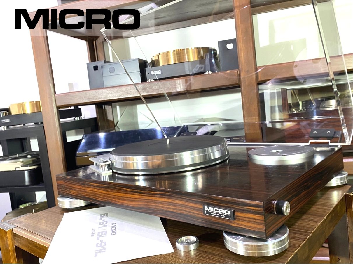 MICRO BL-91L ターンテーブル A-1501ベース/輸送ネジ等付属外周駆動式のベルトドライブ方式を採用したプレーヤーで、ロングアーム専用モデル。