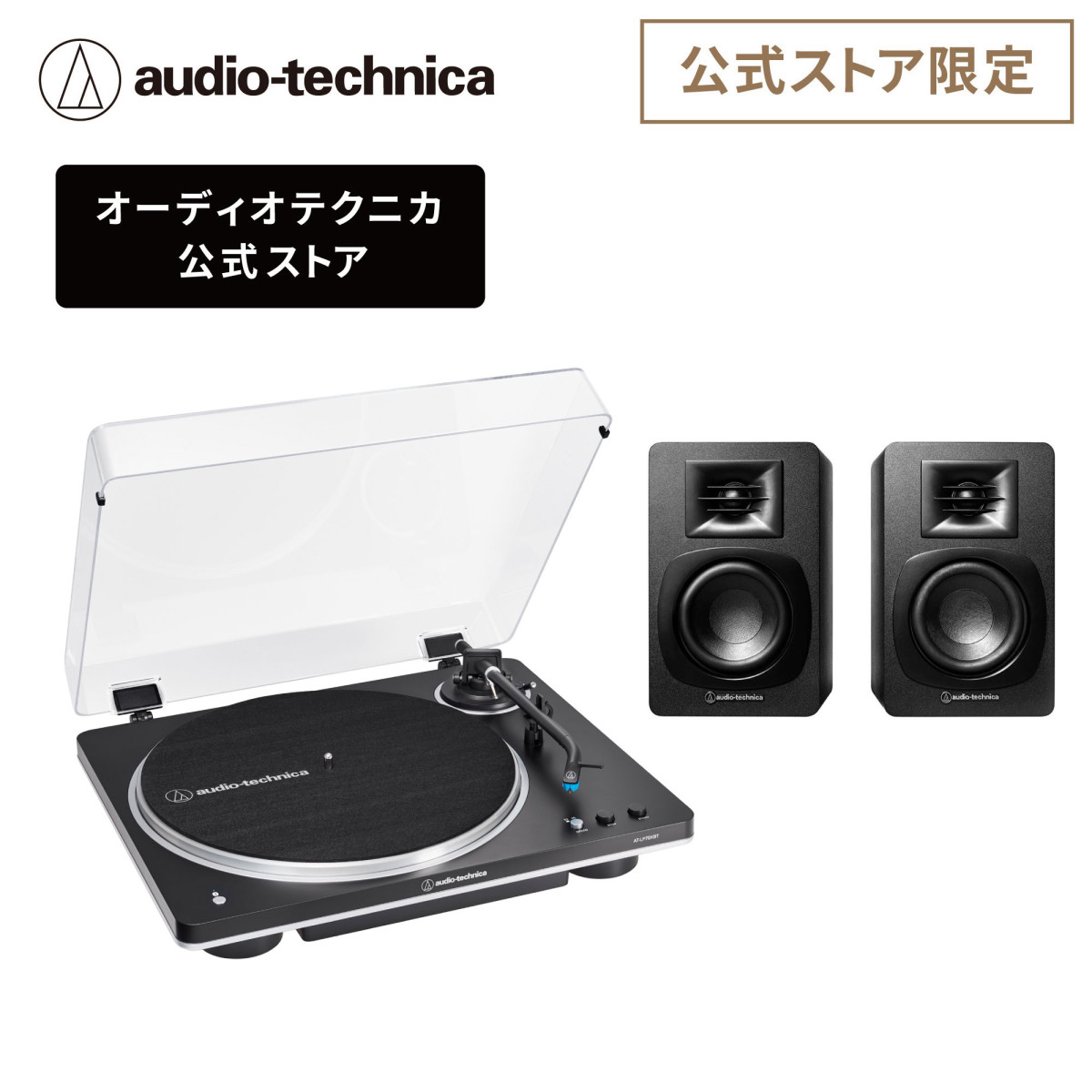 公式ストア限定カラーのレコードプレーヤー「AT-LP70XBT BS」とパワードブックシェルフスピーカー「AT-SP3X」の組み合わせでレコードの再生ができます。