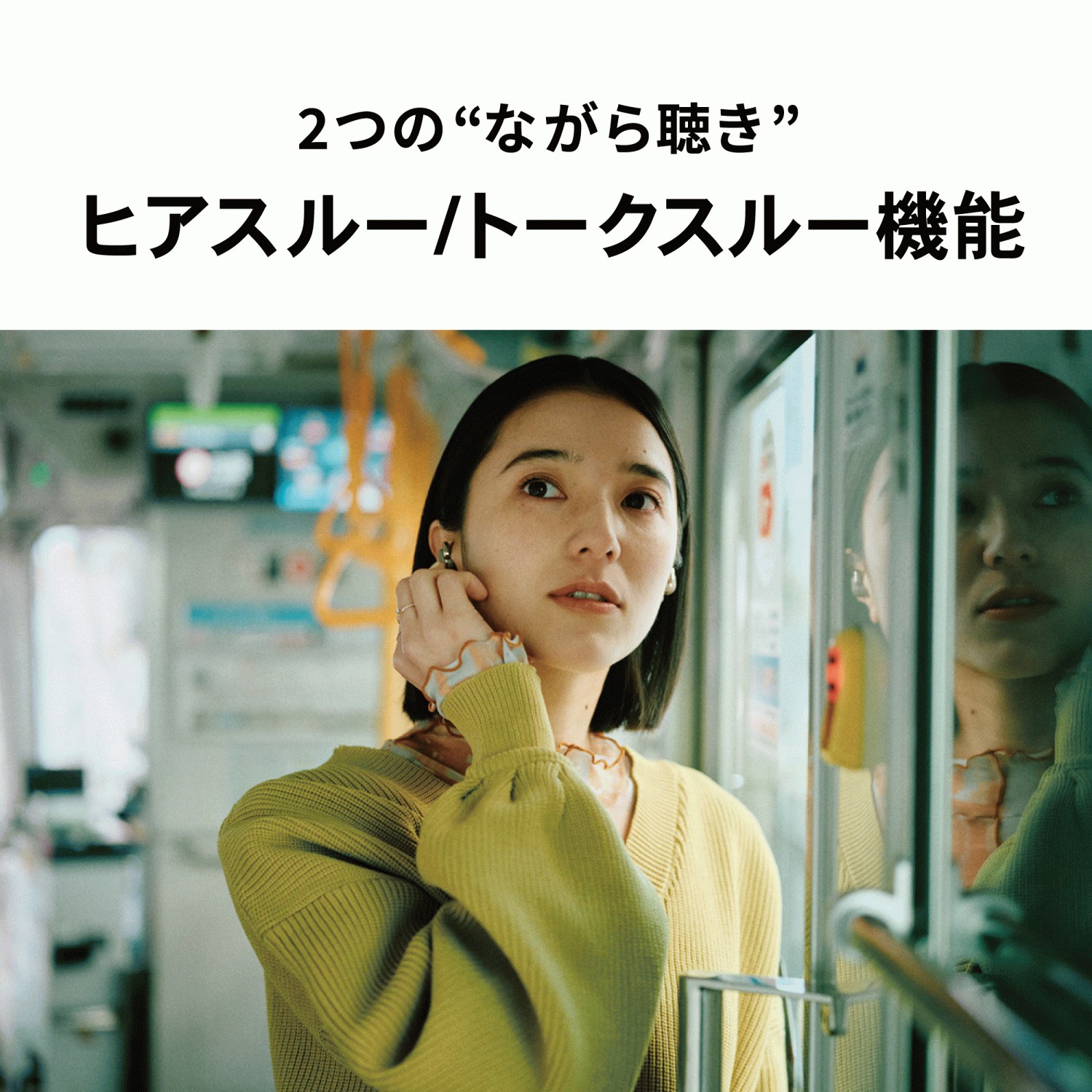 ・外の音を自然に取り込みながら、BGM感覚で音楽が聴けるヒアスルー機能