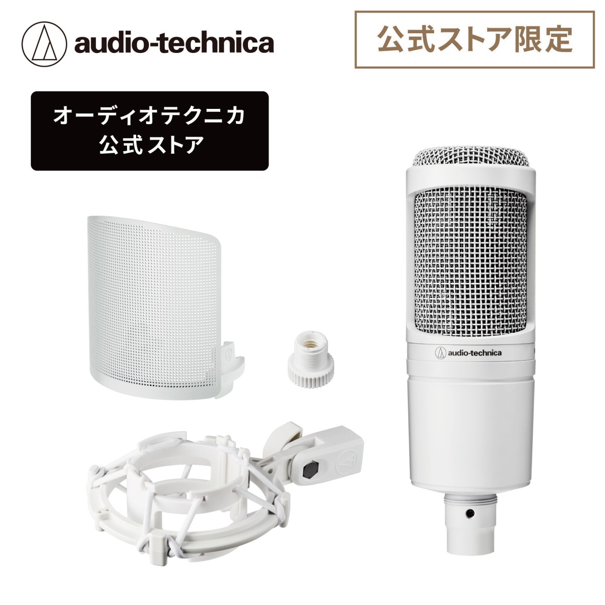 振動ノイズを効果的に吸収するショックマウントと動画配信や、レコーディング時のポップノイズを効果的に低減するポップフィルターを、ホワイトカラー専用アクセサリーとして付属しています。コンテンツを制作するクリエイターにとって、必要なものがセットになった公式オンラインストア限定モデルです。