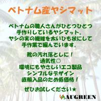ベトナムの職人さんが手作りしています。ヤシの実の繊維を太いひも状にしたものを、ひとつひとつ手作業で編んでできているヤシマット。屋外マットとしてベトナム国内でもよく使用されています。
