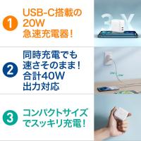 ※本製品の最大出力は【20W】です。ノートパソコン等消費電力の高い機器の充電を行う際は供給電力不足で正常に充電ができない場合がございますのでご注意ください。