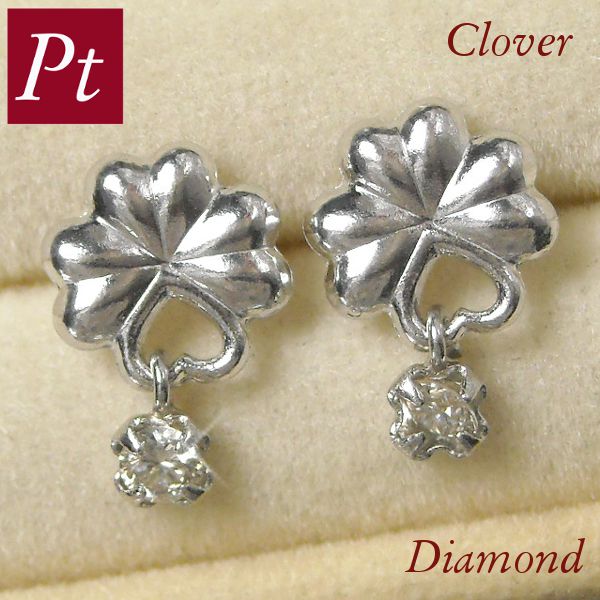 ダイヤモンド ピアス 一粒 レディース 50代 40代 60代 30代 プラチナ 揺れる クローバーモチーフ 計0.06ct 天然石 四つ葉 pt900 4月誕生石 プレゼント ギフト